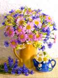 «Букет ромашек с васильками в желтом кувшине»