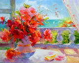 Картина по номерам «Букет роз на окне на фоне моря» размером 40x50 см см. купить по выгодной цене 439 ₽ с доставкой по Москве и всей России.